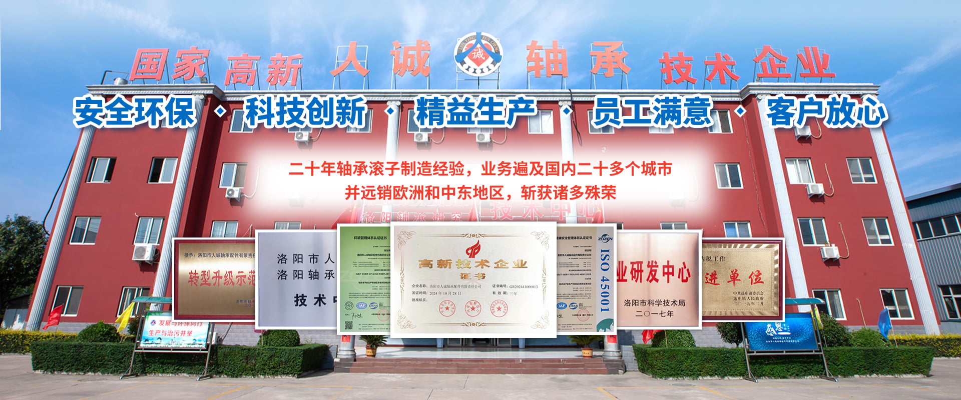 洛陽市人誠軸承配件有限責任公司成立于2003年,2015年由洛陽搬遷至孟津循環(huán)經濟區送莊鎮梁新路,占地60畝,建筑面積20000余平方米。公司專注生產高精圓錐軸承滾子,可根據客戶需求研發(fā)及來樣加工,年產精品滾子4億粒。 我們始終堅持“安全環(huán)保、科技創(chuàng)新、精益生產、員工滿意、客戶放心”的經營理念。先后與河南科技大學、洛陽師范學院、方智測控合作,并與國家洛陽軸承研究所聯合成立“技術中心”,建立了良好的產學研合作機制,為公司的創(chuàng)新發(fā)展打下了堅實的基礎。 2018年公司被認定為國家高新 技術企業,通過了IATF16949:2016質量管理體系、環(huán)境管理體系、職業健康安全管理體系、知識產權管理體系等多項認證。擁有完善的檢測手段,先進的工藝,穩(wěn)定的設備,優(yōu)良的服務。公司董事長葉會卿為洛陽市工商聯副主席,洛陽市軸承滾子行業協會會長,法人李愛芳女士從事軸承滾子制造30余年,積累了豐富的生產管理經驗,誠實守信、務實、合作、共贏的作風深受業界好評。